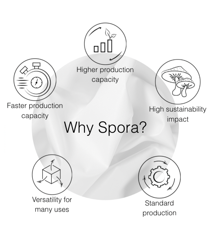 Spora is not only sustainable and durable, but also highly versatile, offering a range of applications from fashion to interior design while supporting a healthier planet.